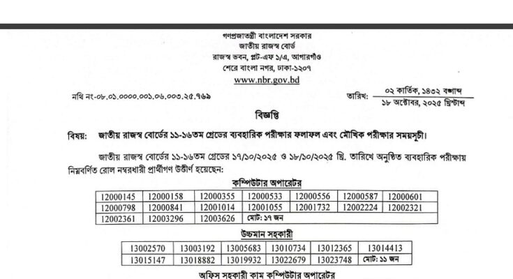 National Board of Revenue (NBR) Practical Test Result 2025: