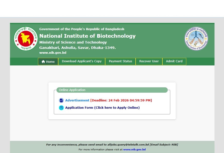 National Institute of Biotechnology NIB Job Circular 2026 has been published by the authority. National Institute of Biotechnology (NIB) Job Circular information is given above. The National Institute of Biotechnology (NIB) is one of the largest Government organizations in Bangladesh. The National Institute of Biotechnology (NIB) has published a huge job circular by the Authority. All information regarding the appointment to the National Institute of Biotechnology (NIB) is given on our website, jobstestbd.com. We publish all job circulars every day, Such as Government Jobs in Bangladesh, Bank Jobs in Bangladesh, Private Jobs in Bangladesh, International NGOs in Bangladesh, Private companies in Bangladesh, and Private University Jobs in Bangladesh. Bank Jobs Results, Government Jobs Results, Government University Jobs Results in Bangladesh, and all Part-time Jobs in Bangladesh and other educational support are available here on our website. We provide different types of job information, and also provide some effective information or resources and job tips that help to get a job easily. We trust that our distribution of data helps job seekers looking for better employment. We likewise share slanting assets for learners who are expanding their insight. Our prime target turns into a trustworthy occupation site in Bangladesh by distributing a genuine update that enables opportunities to individuals. All the jobs on this website are not only for unemployed people but also for employed people. Suggestions and question solutions for the different competitive exams are available here. We provide all types of educational support on our website, jobstestbd.com. So every day, visit our website for all kinds of educational support. Please like our Facebook page, jobstestbd.com.