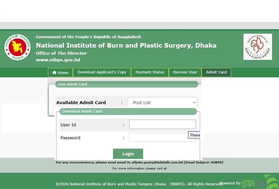 National Institute of Burn and Plastic Surgery (NIBPS) Exam Date and Admit Download 2026 have been published. The authority has published the NIBPS Exam Date and Admit Card Download 2026. The National Institute of Burn and Plastic Surgery Exam Date and Admit Download 2026 is hopeful news for job seekers in Bangladesh. All information on the National Institute of Burn and Plastic Surgery Office Sohayok Exam Date and Admit Download 2026 is available below. The National Institute of Burn and Plastic Surgery (NIBPS) is a Government Organization in Bangladesh.
