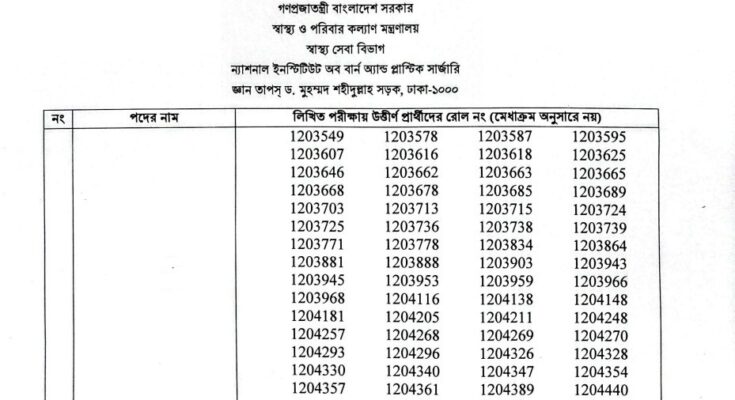 National Institute of Burn and Plastic Surgery Job Exam Result 2026: