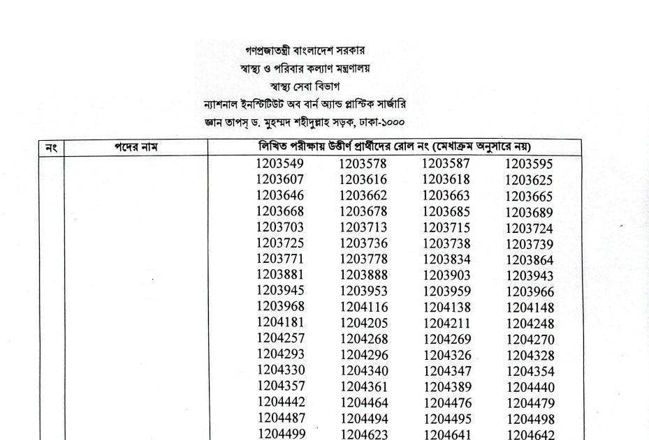 National Institute of Burn and Plastic Surgery (NIBPS) Exam Result 2026 has been published. The authority has published the NIBPS Exam Result 2026. The National Institute of Burn and Plastic Surgery Exam Result 2026 is hopeful news for job seekers in Bangladesh. All information on the National Institute of Burn and Plastic Surgery Office Sohayok Exam Result 2026 is available below. The National Institute of Burn and Plastic Surgery (NIBPS) is a Government Organization in Bangladesh.