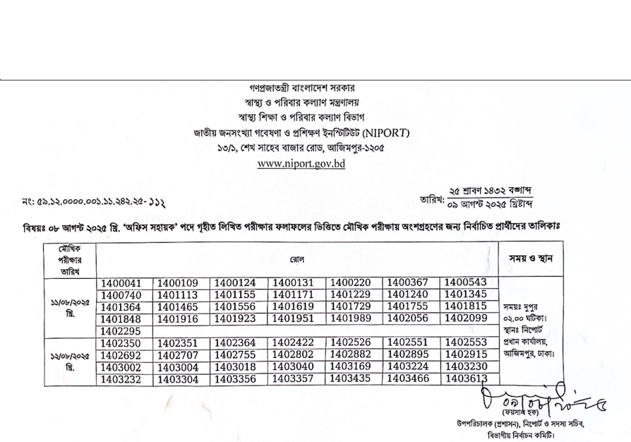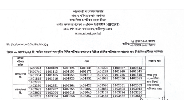National Institute of Population Research and Training (NIPORT) Exam Result 2025: