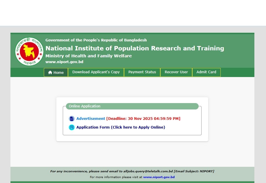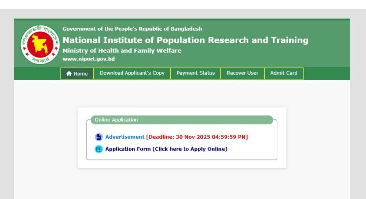 National Institute of Population Research and Training (NIPORT) Job Circular 2025: