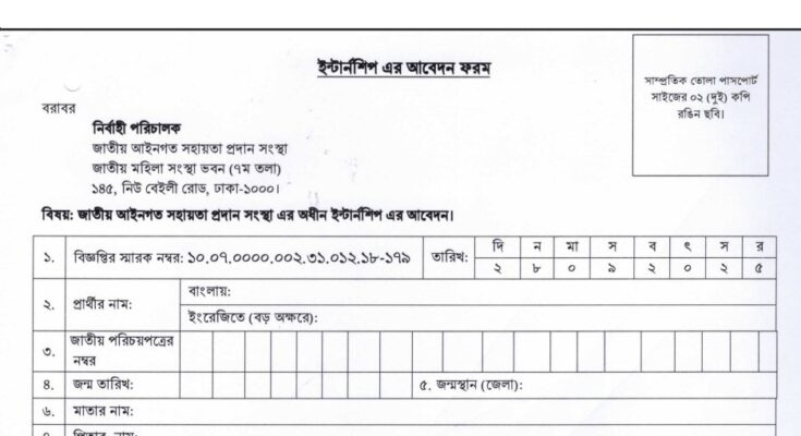 National Legal Aid Services Organization (NLASO) Internship Circular 2025 has been published. The National Legal Aid Services Organization (NLASO) has recently published the NLASO Internship Circular 2025. The authority has published the National Legal Aid Services Organization Internship Circular 2025. The National Legal Aid Services Organization NLASO Internship Circular 2025 is good news for job seekers in Bangladesh. National Legal Aid Services Organization (NLASO) is a Government Organization in Bangladesh. All information on the NLASO Internship Application Form 2025 is available below.