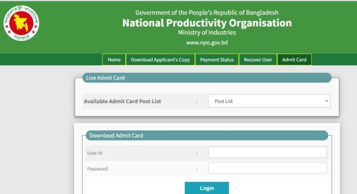 National Productivity Organisation (NPO) Exam Date and Admit Download 2026 have been published. NPO Exam Date and Admit Download 2026 have been published by the authority. The National Productivity Organisation Exam Date and Admit Download 2026 is good news for job seekers in Bangladesh. All information on the National Productivity Organization Exam Date 2026 is available below. National Productivity Organisation (NPO) is a Government Organization in Bangladesh.