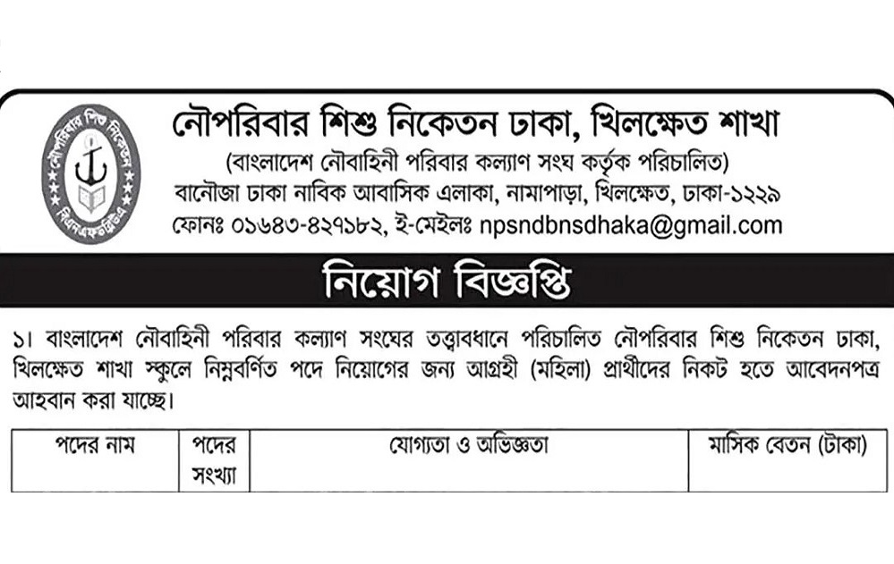 Nau Poribar Shishu Niketon Dhaka Job Circular 2025 has been published. The authority has published the NPSN Job Circular 2025. Nau Poribar Shishu Niketon Dhaka Junior Teacher Job Circular 2025 is good news for job seekers. All information on the Nau Poribar Shishu Niketon Dhaka Khilkhet Branch Job Circular 2025 is available below. The Nau Poribar Shishu Niketon Dhaka is a Government organization in Bangladesh.