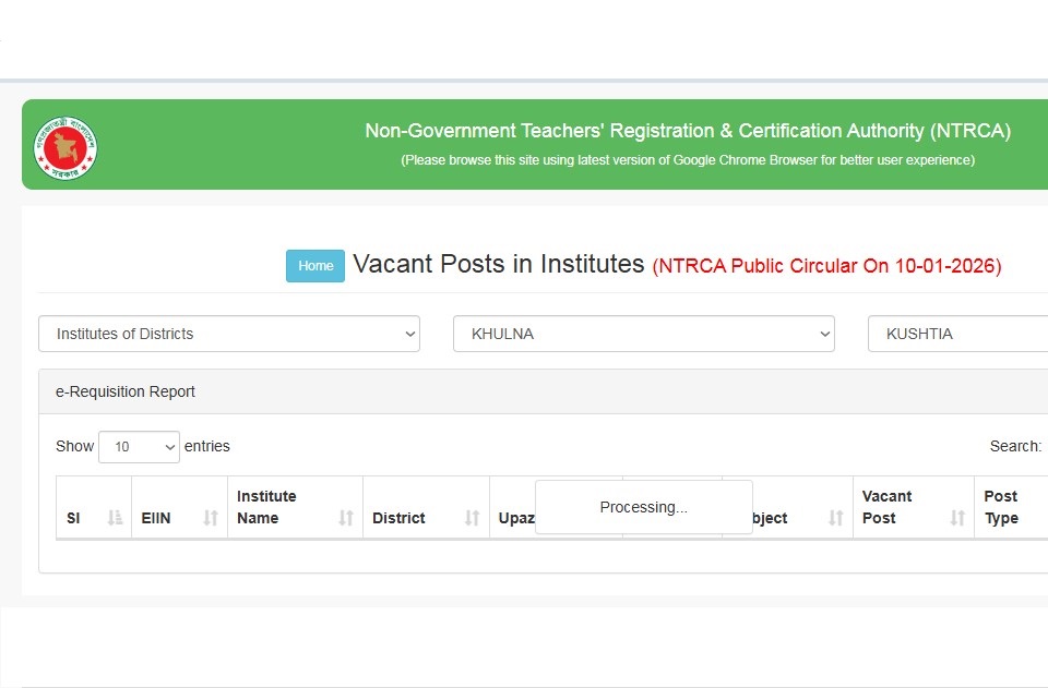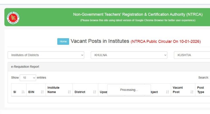 NTRCA 7th Public Circular District-Wise Vacancy List 2026 has been published. The authority has published the NTRCA District-Wise Vacancy List 2026. Teachers Registration NTRCA 7th Public Circular District Wise Vacancy List 2026 is good news for job seekers. All information on the NTRCA 7th Public Notice District Wise Vacancy List 2026 is available below. The Non-Government Teachers Registration and Certification Authority (NTRCA) is a government organization in Bangladesh.