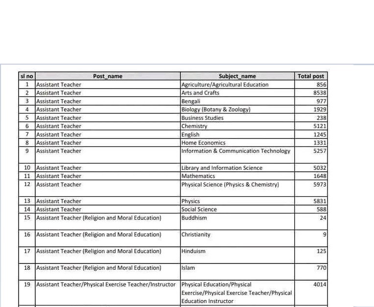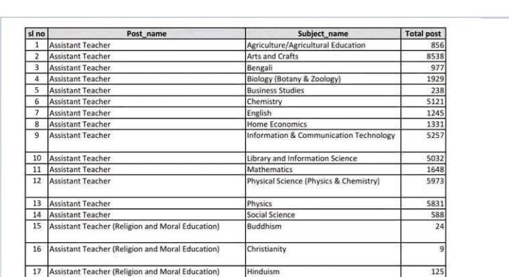 NTRCA Teacher Recruitment Subject-Wise Vacancy List 2026:
