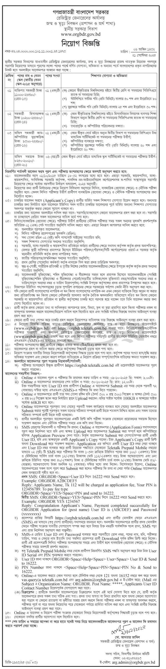 See/Download Office of the Registrar General Birth and Death Registration (ORGBRD) Job Circular 2025, Job Apply  Instructions, Job Application Form, Application Fee, Payment Process, Salary, Age, and Other Information from the images below:
