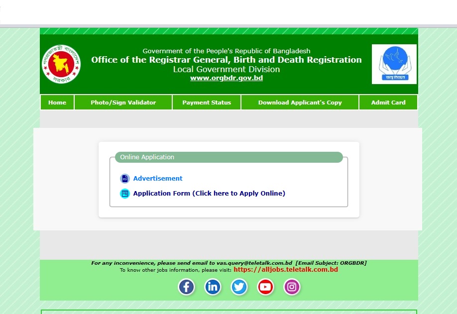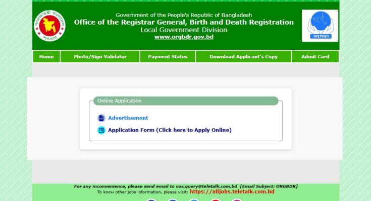 Office of the Registrar General Birth and Death Registration Job Circular 2025: