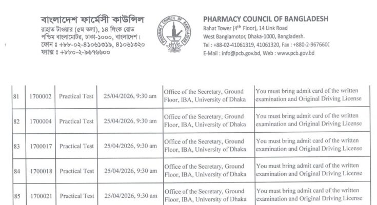 Pharmacy Council of Bangladesh Practical Test Date 2026: