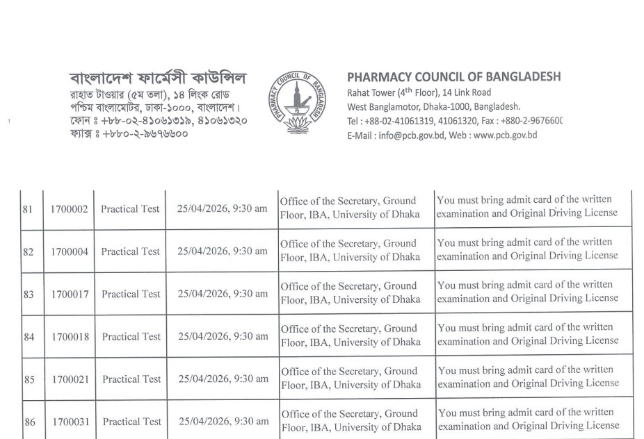 See/download the Pharmacy Council of Bangladesh (PCB) Practical Test Date Notice 2026 from the images below: