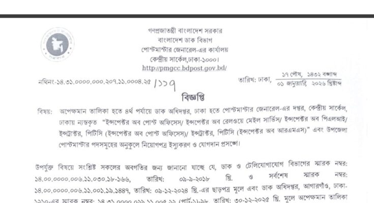 PMGCC Panel Result 2026 has been published. Office of the Postmaster General Central Circle (PMGCC) Panel Result 2026 has been published by the authority. Postmaster General Central Circle Panel Result 2026 is good news for the students. All information on the PMGCC Inspector of Post Office Panel Result 2026 is available below. The Office of the Postmaster General Central Circle (PMGCC) is a government organization in Bangladesh.
