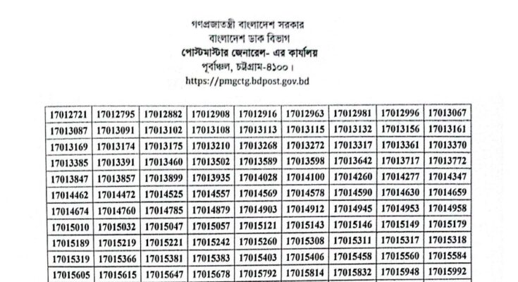 PMGEC Exam Result 2026 has been published. Postmaster General’s Office Eastern Circle (PMGEC) Exam Result 2026 has been published by the authority. Post Office Chittagong Exam Result 2026 is good news for job seekers in Bangladesh. All information on the Postmaster General Chattogram Exam Result 2026 is available below. Post Office Chattogram Exam Result 2026 essential news will be available in our post. Office of the Postmaster-General Eastern Circle Chattogram is a Government Organization in Bangladesh.