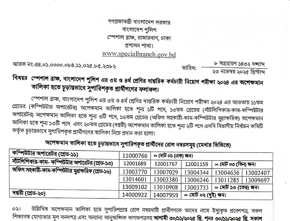 See/download Bangladesh Police Special Branch Panel Result Notice 2025 from the images below:
