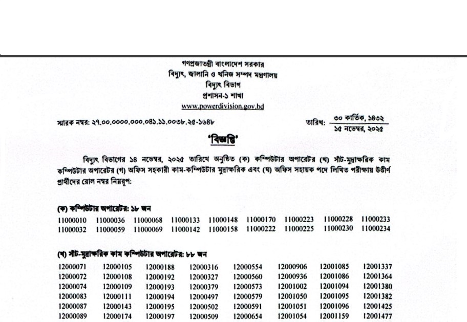 See/download the Power Division Exam Result Notice 2025 from the images below: