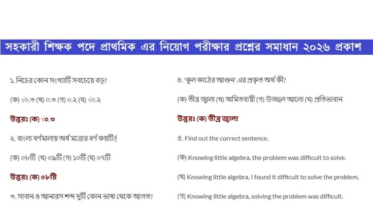 Primary School Assistant Teacher Job Exam Question Solution 2026: