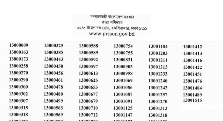 Department of Prisons Exam Result 2025 has been published. The authority has published the Prisons Department Exam Result 2025. The Prisons Directorate Exam Result 2025 is good news for job seekers. All information on the Department of Prisons UDA Exam Result 2025 is available below. The Department of Prisons is a Government organization in Bangladesh.