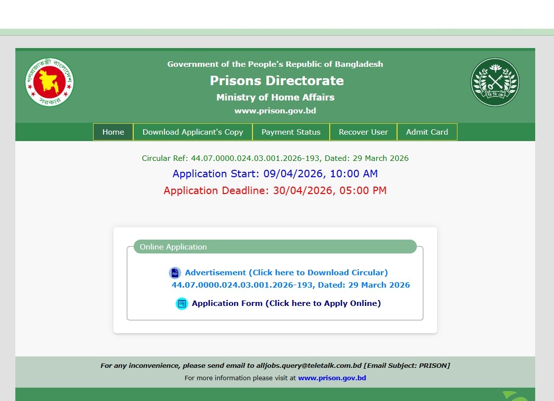 Prisons Directorate Job Circular 2026 has been published by the authority. Department of Prisons Job Circular All information is given above. Department of Prisons is one of the largest Government organizations in Bangladesh. The Department of Prisons is given on our website jobstestbd.com. We Publish all job circulars every day, Such as Government Jobs in Bangladesh, Bank Jobs in Bangladesh, Private Jobs in Bangladesh, International NGOs in Bangladesh, Private companies in Bangladesh, and Private University Jobs in Bangladesh. Bank Jobs Results, Government Jobs Results, Government University Jobs Results in Bangladesh, and all Part-time Jobs in Bangladesh and other educational support are available here on our website. We provide different types of job information with also provide some effective information or resources and job tips which help to get a job easily. We trust that our data distribution will help activity searchers who are looking for better employment. We likewise share slanting assets for learners uniquely who are expanding their insight. Our principle target turns into a trusty occupations round site in Bangladesh by distributing a genuine refresh that enables opportunities to individuals. All the jobs on this website are not only for unemployed people but also for employed people. All types of suggestions and question solutions for the different competitive exams are available here. We provide all types of educational support on our website jobstestbd.com. So every day tune in to our website for all kinds of educational support. Please like our Facebook page jobstestbd.com.