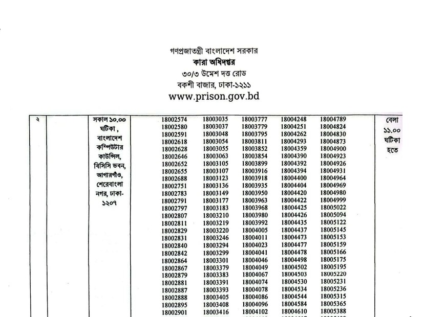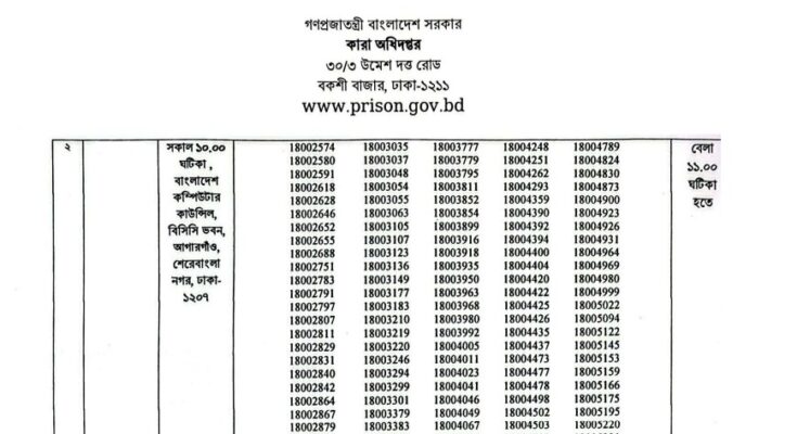 Department of Prisons Practical Test Date 2025 has been published. The authority has published the Prisons Jail Assistant Cum Computer Typist Practical Test Date 2025. Department of Prisons Jail Assistant Cum Computer Typist Practical Test Date 2025 is good news for job seekers. All information on the Prisons Directorate Practical Test Date 2025 is available below. The Department of Prisons is a Government organization in Bangladesh.