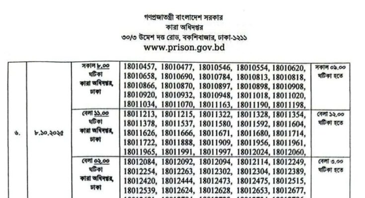 Department of Prisons Viva Date 2025 has been published. The authority has published the Prisons Viva Date 2025. Department of Prisons Jail Assistant Cum Computer Typist Viva Date 2025 is good news for job seekers. All information on the Prisons Directorate Viva Date 2025 is available below. The Department of Prisons is a Government organization in Bangladesh.
