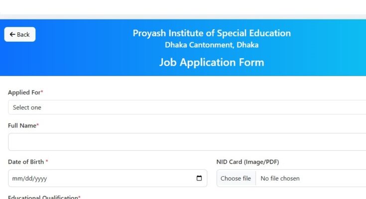 Proyash Institute of Special Education Job Circular 2026 has been published. The authority has published the Proyash Institute of Special Education Job Circular 2026. Proyash Bangladesh Army Job Circular 2026 is good news for job seekers. All information on the Proyash Army Job Circular 2026 is available below. The Proyash Dhaka Cantonment is a government organization in Bangladesh.