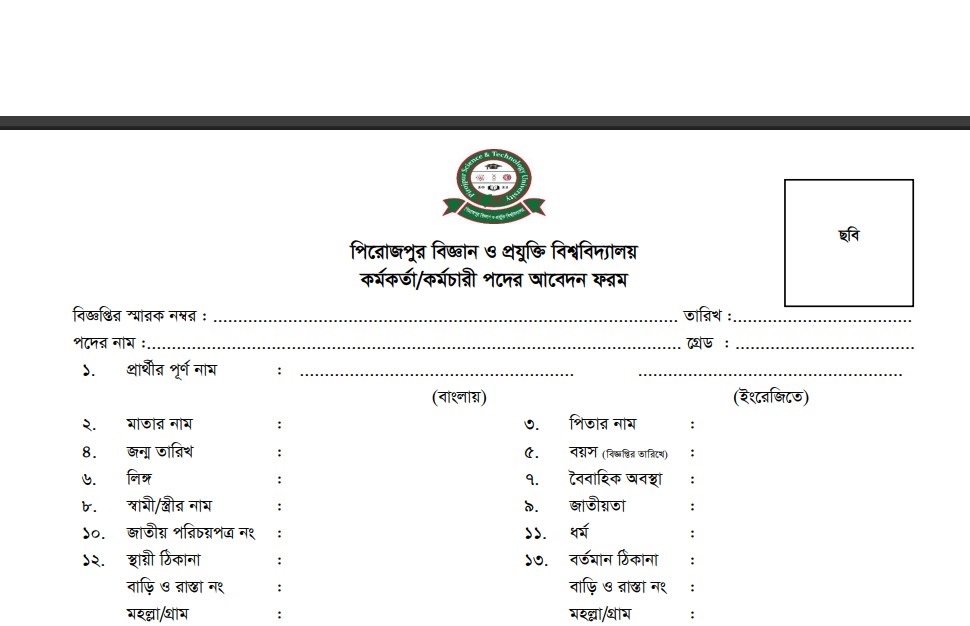 Pirojpur Science and Technology University Job Circular 2026: