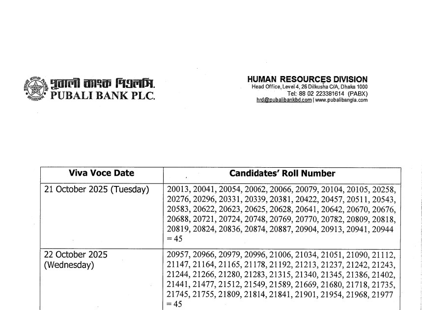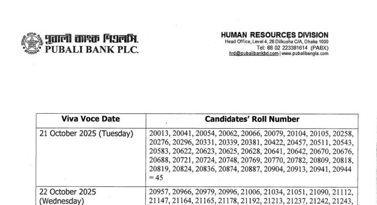 See/download the Pubali Bank Job Viva Date 2025 from the images below:
