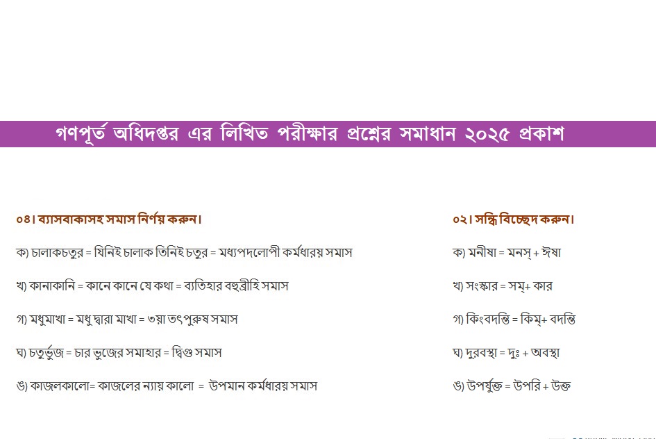 ০৪। ব্যাসবাকাসহ সমাস নির্ণয় করুন।