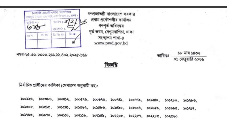 Public Works Department (PWD) Final Viva Result 2026 has been published. The authority has published the Public Works Department Final Result 2026. PWD Office Sohayok Final Result 2026 is good news for job seekers. All information on the PWD Work Assistant Final Result 2026 is available below. The Public Works Department (PWD) is a Government Organization in Bangladesh.