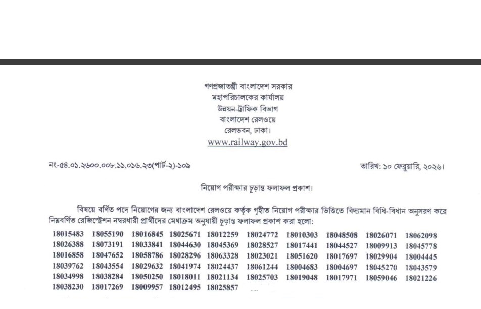 See/download the Bangladesh Railway Final Result Notice 2026 from the images below: