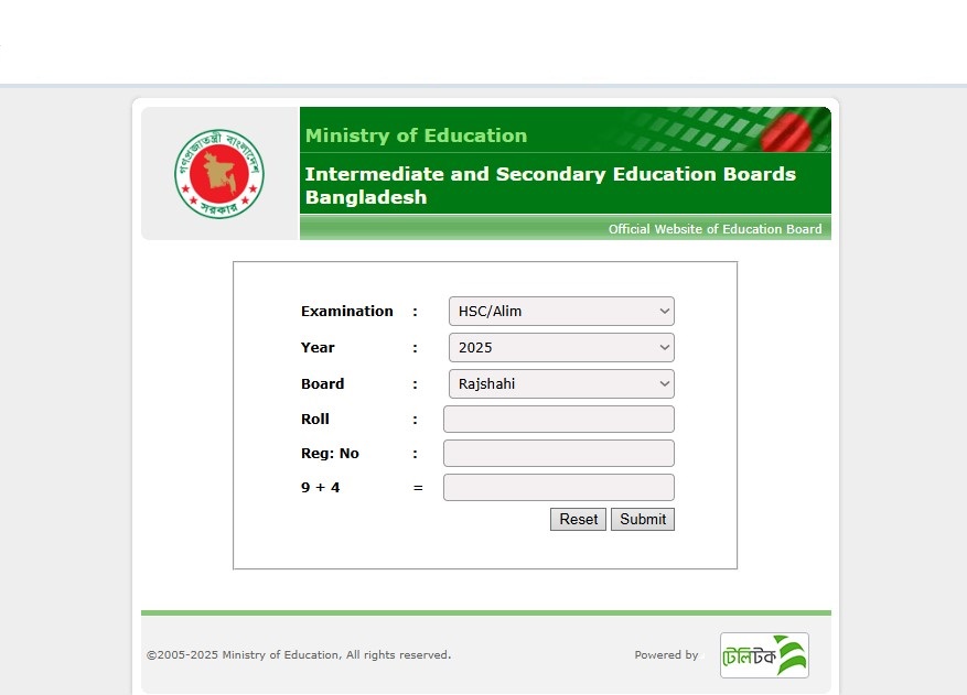 Board Name: Board of Intermediate and Secondary Education, Rajshahi