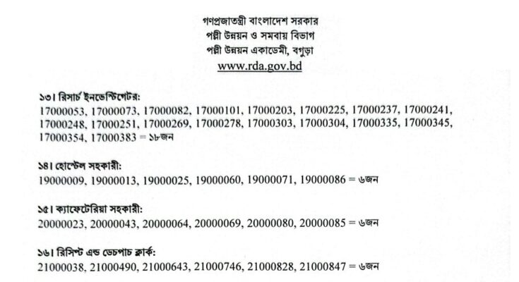 Rural Development Academy Bogura Exam Result 2025: