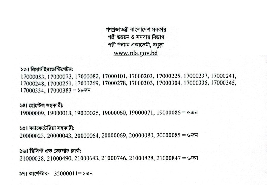 See/download the Rural Development Academy (RDA), Bogura Exam Result Notice 2025 from the images below: