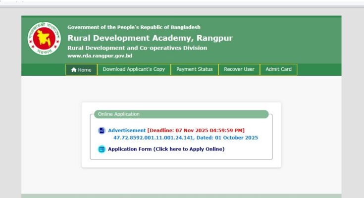 Rural Development Academy (RDA) Rangpur Job Circular 2025: