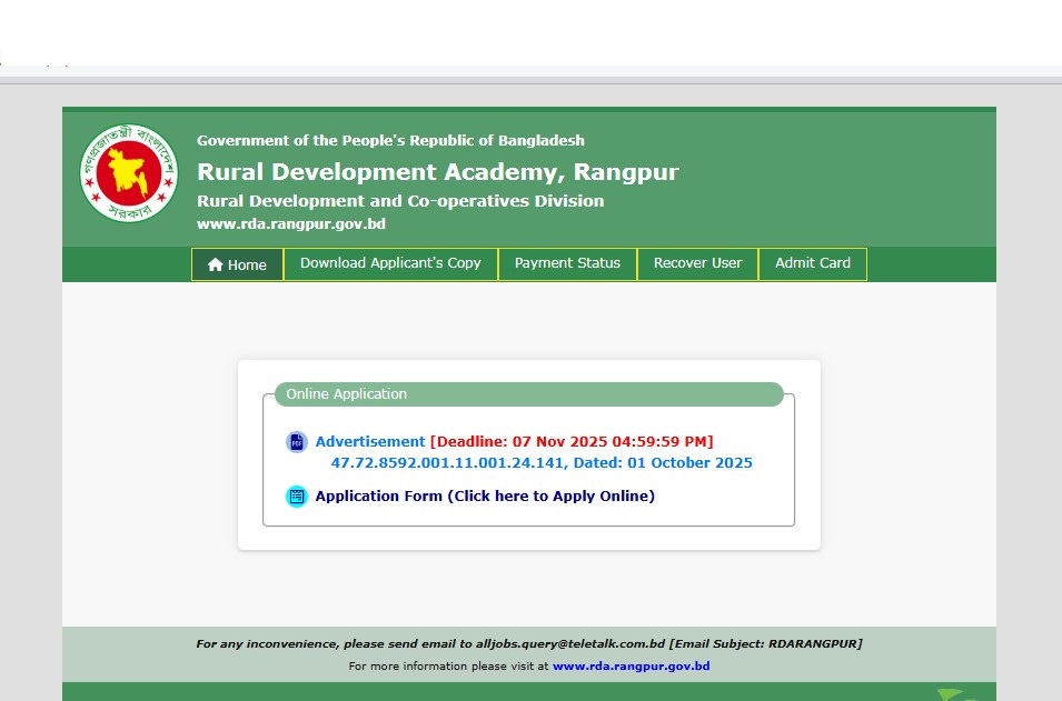 Rural Development Academy, Rangpur Job Circular 2025 has been published. Rural Development Academy (RDA) has published circulars on various categories of posts. Rural Development Academy (RDA) is one of the largest Government organizations in Bangladesh. Rural Development Academy (RDA) has published a huge job circular by the Authority. All information regarding the Rural Development Academy (RDA) appointment is given on our website, jobstestbd.com. We publish all job circulars daily, Such as Government Jobs in Bangladesh, Bank Jobs in Bangladesh, Private Jobs in Bangladesh, International NGOs in Bangladesh, Private companies in Bangladesh, and Private University Jobs in Bangladesh. Bank Jobs Results, Government Jobs Results, Government University Jobs Results in Bangladesh, and all Part-time Jobs in Bangladesh and other educational support are available here on our website. We provide different types of job information, including some effective information or resources, and job tips that help to get a job easily. We trust that our distribution data helps job seekers who are finding superior employment. We likewise share slanting assets for learner who are expanding their insight. Our main target turn into a trustworthy occupation site in Bangladesh by distributing a genuine update that enables individuals. All the jobs on this website are not only for unemployed people but also for employed people. All types of suggestions and solutions for the different competitive exams are available here. We provide various kinds of educational support on our website, jobstestbd.com. So every day, tune in to our website for all kinds of academic support. Please like our Facebook page, jobstestbd.com.