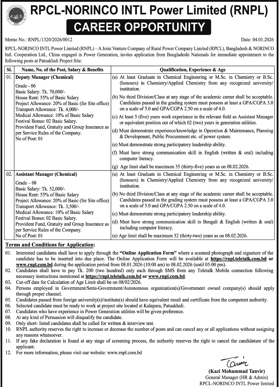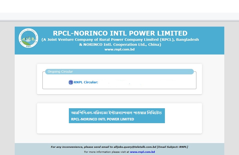 RNPL Job Circular 2026 has been published. The authority has published the RPCL NORINCO INTL Power Limited Job Circular 2026. RPCL Norinco International Power Limited Job Circular 2026 is good news for job seekers in Bangladesh. All Norinco International Power Limited Job Circular 2026 information is available below. The RPCL Norinco International Power Limited (RNPL) is a Government Organization in Bangladesh.