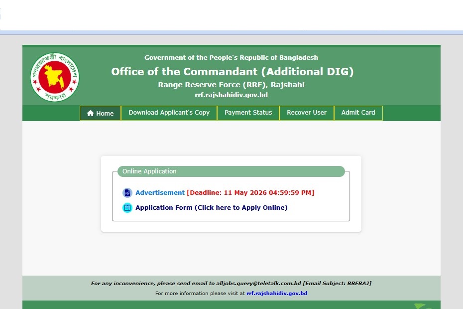 Organization Name: Range Reserve Force (RRF), Rajshahi Under Office of the Commandant (Additional DIG)