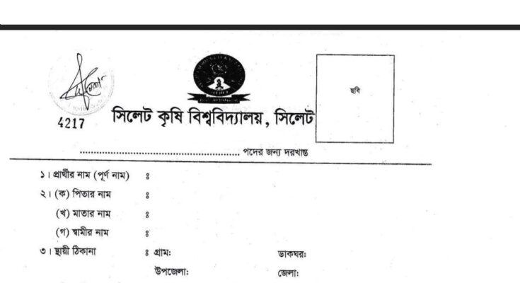 See/download Sylhet Agricultural University Job Circular 2025, Job Apply Instructions, Job Application Form, Application Fee, Payment Process, Salary, Age, and Other Information from the images below: