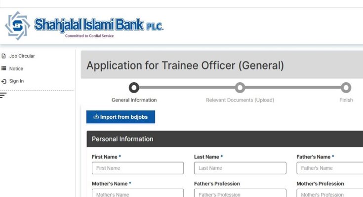 Shahjalal Islami Bank Trainee Officer (General) Job Circular 2026: