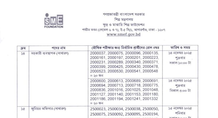 SME Foundation (SMEF) Exam Result 2025 has been published. The authority has published the SMEF Exam Result 2025. Small and Medium Enterprise Foundation (SMEF) Exam Result 2025 is good news for job seekers in Bangladesh. All information on the SME Foundation Exam Result 2025 is available below. Small and Medium Enterprise Foundation (SMEF) is a government organization in Bangladesh.
