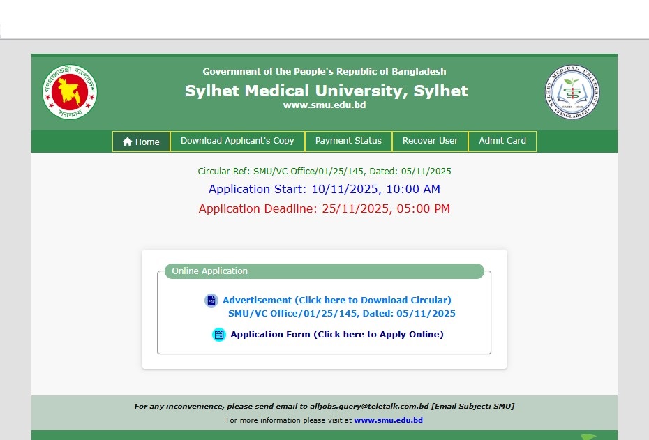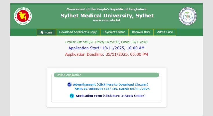 See/download the Sylhet Medical University Job Circular 2025, Job Application Form, Job Apply Instructions, Application Fee, Payment Process, Salary, Age, and Other Information from the images below: