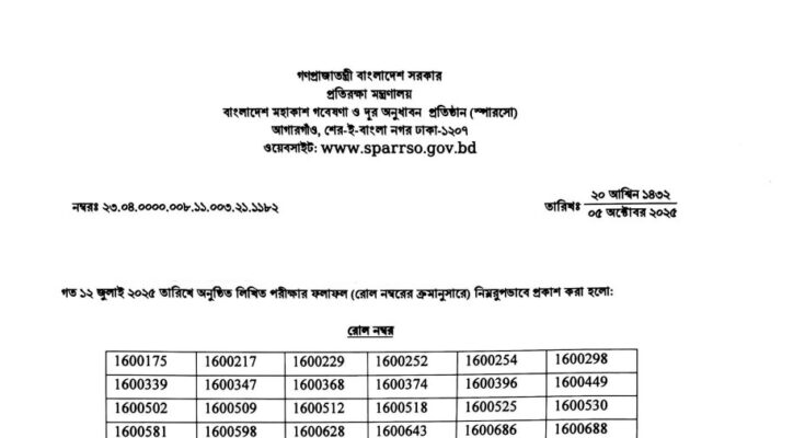 Bangladesh Space Research and Remote Sensing Organization Exam Result 2025: