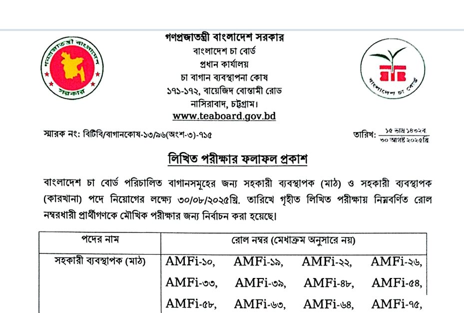 See/download the Bangladesh Tea Board Job Exam Result Notice 2025 from the images below: