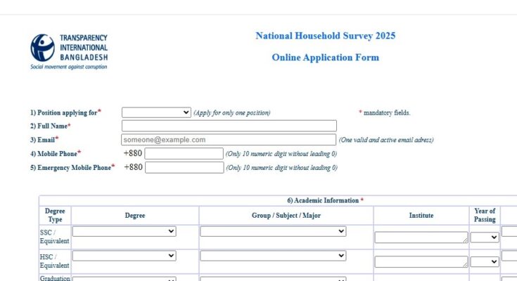 See/download Transparency International Bangladesh Job Circular 2025, Job Application Form, Job Apply Instructions, Educational Qualification, Salary, Application Fee, Age, and Other Information from the images below: