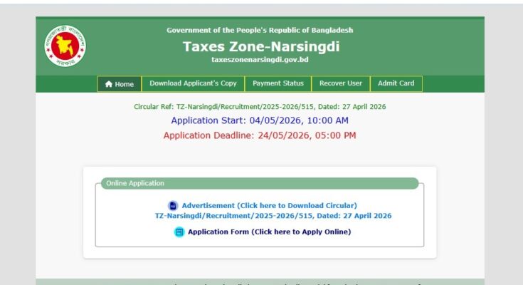 Narsingdi Taxes Zone Job Circular 2026: