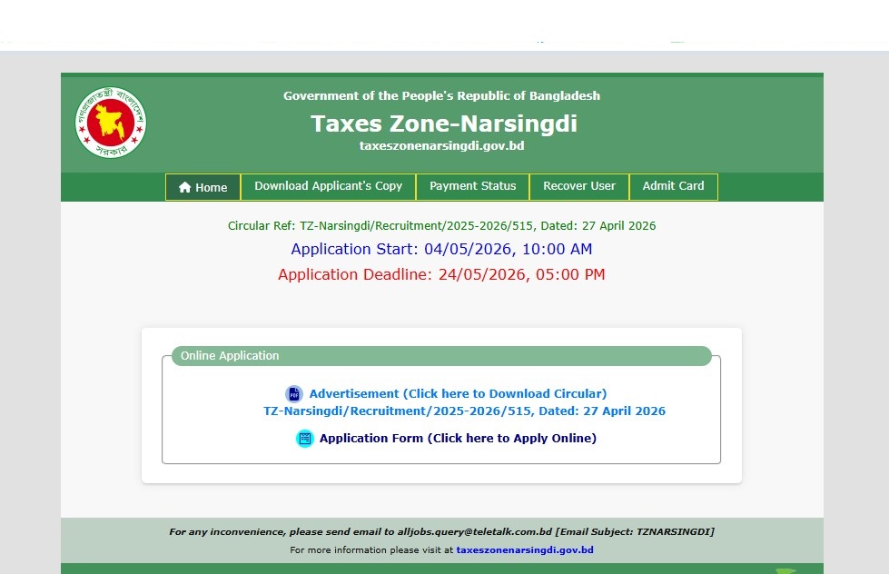 Taxes Zone Narsingdi Job Circular 2026: