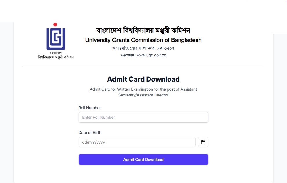 University Grants Commission (UGC) Exam Date and Seat Plan 2026 have been published. University Grants Commission Exam Date 2026 has been published by the authority. The UGC Exam Seat Plan 2026 is good news for job seekers. All information on the University Grants Commission (UGC) Assistant Secretary/Assistant Director Admit Card Download 2026 is available below. University Grants Commission (UGC) is a Government organization in Bangladesh.