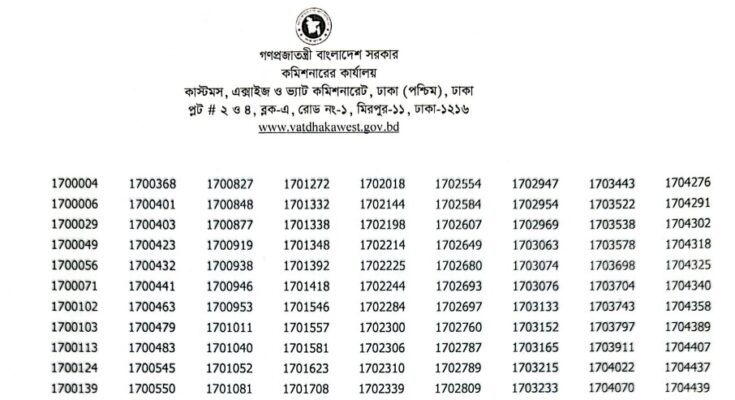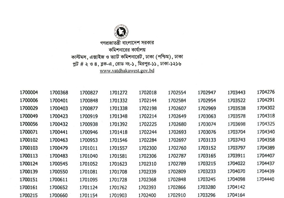 Organization Name: Customs Excise and VAT Commissionerate, Dhaka (West)